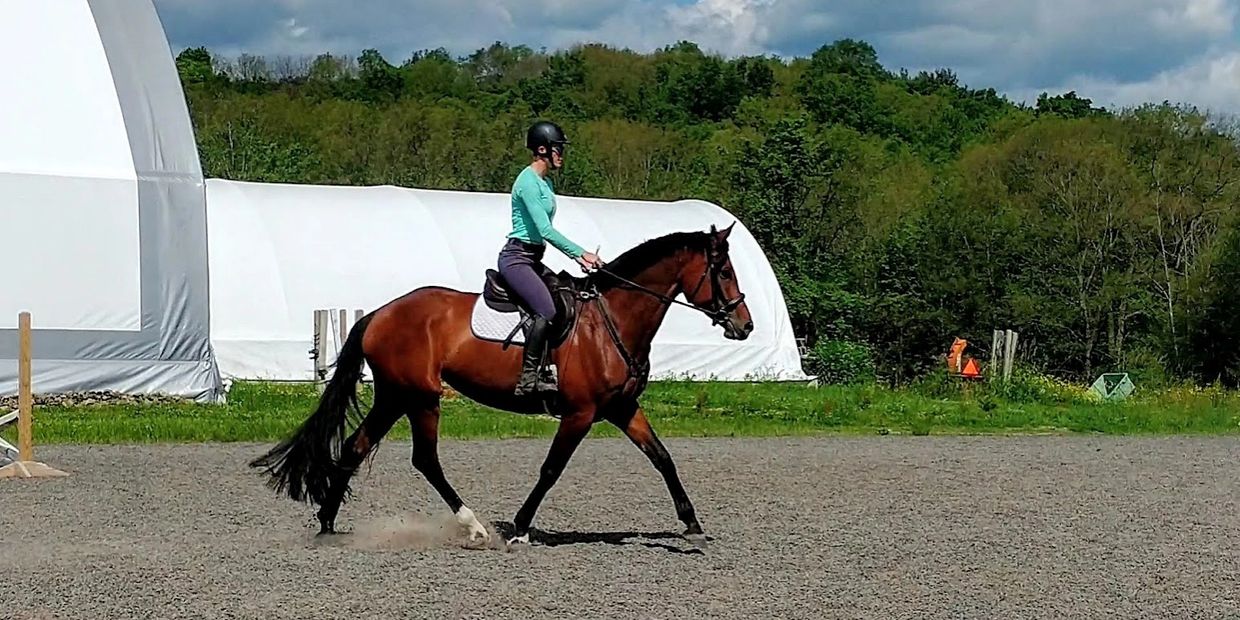 Charlie came unbroke, scared, and still bonded to his mother. He left as a sweet, goofy lower level dressage and eventing prospect!